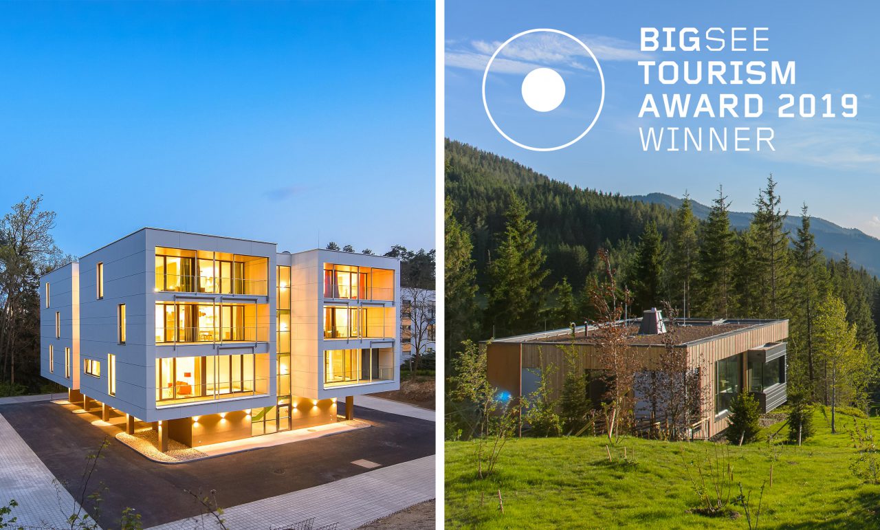 Our pro­ject “Ronald McDo­nald House Cha­ri­ty, Graz” and “Delu­xe Moun­tain Cha­lets” at the pres­ti­gious Stei­re­reck won the Big­SEE Tou­rism Award 2019!