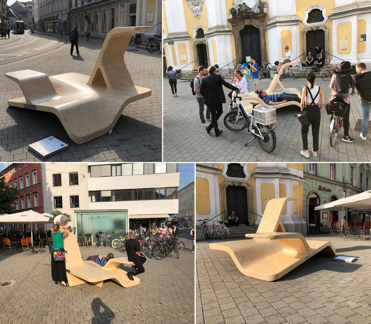 The ope­ning cerem­o­ny for the Design­mo­nat Graz 2018 took place on Fri­day 4th May 2018 and the fur­ni­tu­re will be dis­play­ed for the next few weeks > HERE < at Annen­stra­ße 4, 8020 Graz, next to Lore­to­ka­pel­le. Sit down and relax!