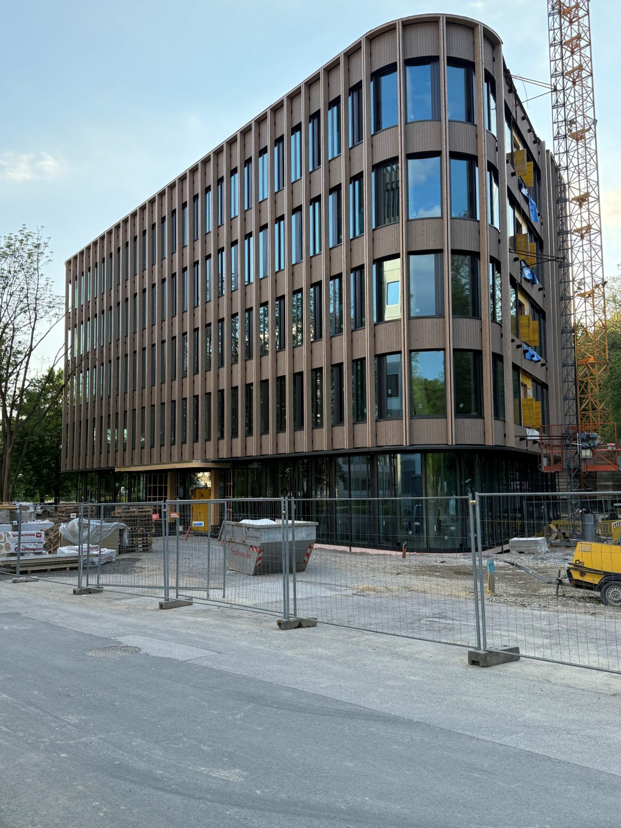 The tim­ber struc­tu­re is up, glass faca­de is next!