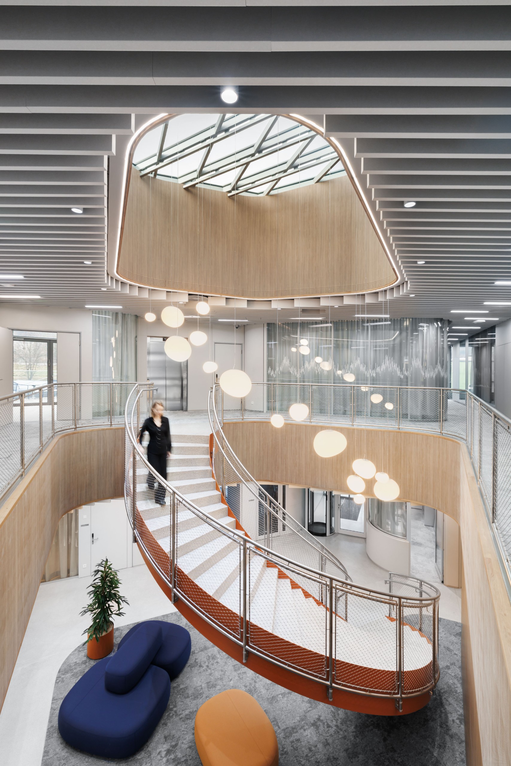 Each fol­ding ele­ment refe­ren­ces the sinuous pat­terns of aus­tri­an rivers, trans­la­ting hydro­lo­gi­cal flow into a func­tion­al skin. The result is a sur­face that appears to ripp­le and shift—echoing the natu­ral rhyth­ms of water—while maxi­mi­zing ener­gy effi­ci­en­cy and user com­fort.