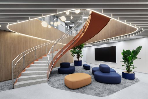 Die auto­ma­ti­sier­ten Falt­ele­men­te kön­nen auf Umwelt­ein­flüs­se reagie­ren und pas­sen sich aktiv an – für opti­ma­len Son­nen­schutz, Belüf­tung und visu­el­le Trans­for­ma­ti­on im Tages­ver­lauf. So ent­steht eine Ober­flä­che, die sich wie Was­ser bewegt, fließt und ver­än­dert – eine archi­tek­to­ni­sche Hom­mage an den Rhyth­mus der Natur.