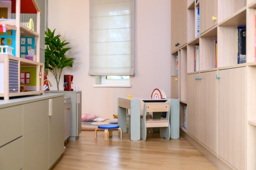 Das Ronald McDonald Haus-Projekt in Wiener Neustadt konzentriert sich darauf, ein komfortables “Zuhause auf Zeit” für Familien mit schwerkranken Kindern zu schaffen. Das Design umfasst vier Apartments, von denen zwei barrierefrei sind, sowie Gemeinschaftsbereiche wie eine gemeinsame Küche, Ess- und Wohnräume, ergänzt durch private Rückzugsorte wie eine TV-Ecke und eine Leseecke. Diese Räume fördern das Miteinander der Familien, bieten aber auch Momente der Ruhe. Der Entwurf setzt auf natürliche Farben und Materialien, die Wärme und Funktionalität vereinen. Zentrale Elemente sind eine maßgefertigte Tischlereinheit mit Stauraum, ein Kinderspielbereich und eine gemütliche Essecke. Die Gemeinschaftsküche ist für vier Familien ausgelegt, mit modernen Geräten ausgestattet und einer zentralen Insel, die gemeinsames Kochen und Interaktion anregt. Rückzugsorte wie eine Leseecke und ein Home-Office bieten Privatsphäre, während drehbare Lamellen Flexibilität bieten, um Räume entweder für Gemeinschaft oder Abgeschiedenheit zu gestalten.